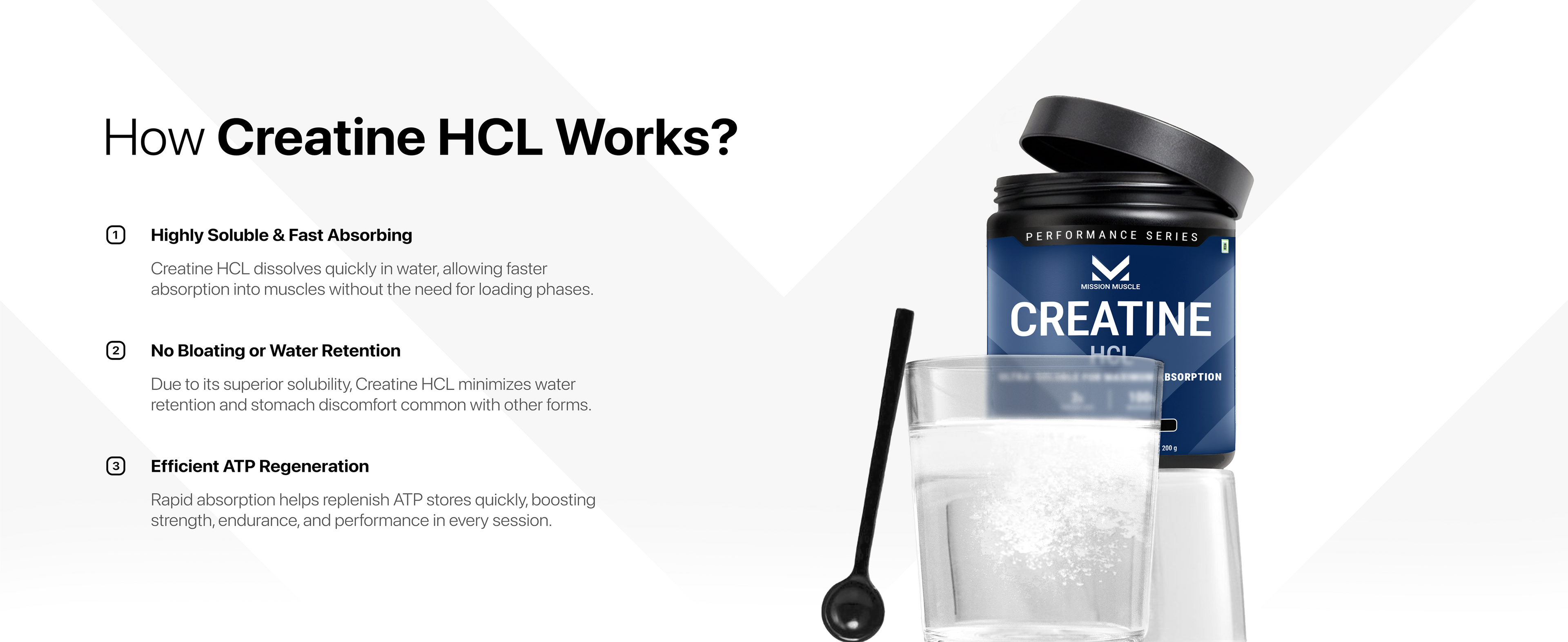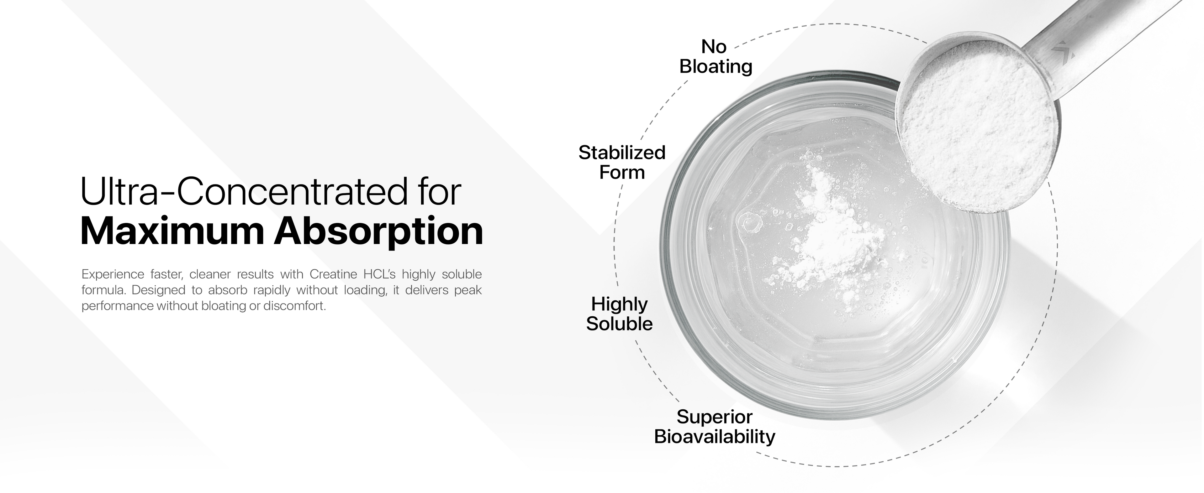 - High Absorption Formula: Each serving delivers 2g of ultra-concentrated Creatine Hydrochloride for faster uptake and no loading phase.