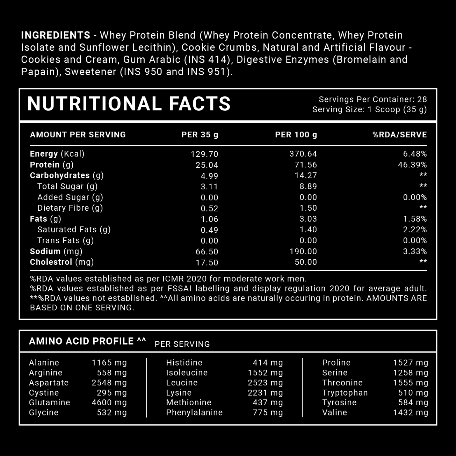 - High Protein Content: 25g of premium whey protein per serving to fuel your muscles and aid recovery.