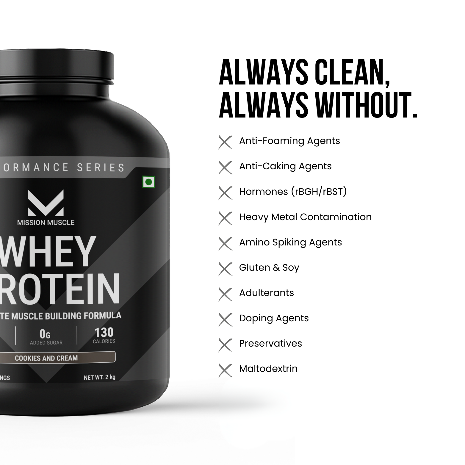 Mission Muscle Whey Protein | 2kg (4.4 lbs) | Cookies and Cream Flavour