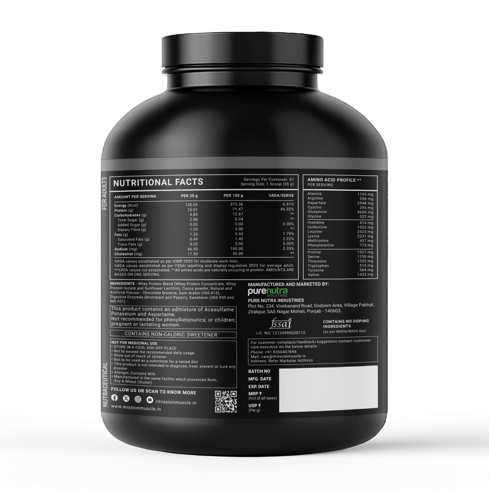 Mission Muscle Whey Protein | 2kg (4.4 lbs) | Chocolate Brownie Flavour